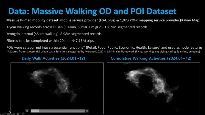 My primary approach utilizes GIS, network analysis, visualization, and AI techniques to extract meaningful patterns from large spatial data sets. This data typically includes points and zones (such as residential parcels and administrative boundaries) as well as network and flow patterns (e.g., navigation and mobile phone GPS trajectories, card transaction data, and vehicle origin-destination flows). By applying these analytical techniques, my objective is to transform raw data into actionable knowledge, which can then be used to support urban planning and policy-making related to land use, residential market, social inequities, and safety. For instance, please see Research Highlights below.